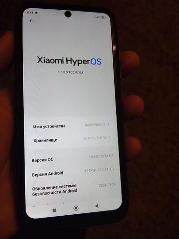 Смартфон Redmi Note 11 Главное: - Память: 6+2ГБ ОЗУ / 128 ГБ встроенной (на экране «Хранилище: 26,7 ГБ / 128 ГБ»). -Экран китай -Экранда сыныгы бар -камера 06x иштебейт -передный Камера иштебет
