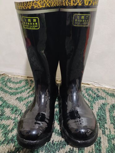 Отмечены фирменными наклейками на голенище с иероглифами (модель «многофункциональная безопасная обувь»). Подойдут для повседневной защиты ног от воды и грязи.