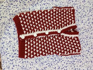 Детский вязаный свитер - Размер: 128 - Цвет: пыльная роза/винный розово-лиловый - Дизайн: объемный жаккардовый узор сердечки по всей поверхности - Крой: реглан, круглая горловина - Манжеты, горлов...