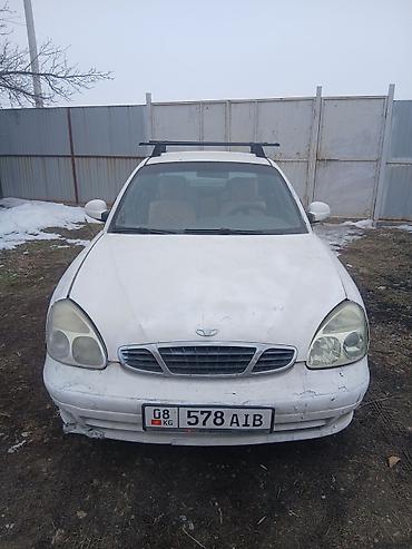 Daewoo Nubira седан, белый цвет, кузов J100. Кыргызстанские номера. Основное: - 4 двери, 5 мест - Передний привод - Бензиновый двигатель (атмосферный), механическая коробка (по линейке модели) - К...