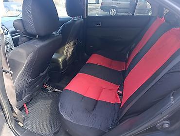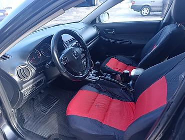 Mazda 6, седан, черный цвет кузова. Просторный салон с тканевыми чехлами сидений (черно‑красные), передний подлокотник, мультируль, механическая коробка передач. На панели — аналоговые приборы с бортовым компьютером, центральная консоль с аудиосистемой и климатическим блоком, электрические стеклоподъёмники, регулировка зеркал, кнопки управления на панели слева от руля. Резиновые коврики, тонировка стекол. Литые колесные диски, зимние шины, задний стеклоочиститель на крышке багажника, расширенный выхлопной патрубок. Передние противотуманные зоны в бампере, повторители поворота в зеркалах не предусмотрены. Клиренс городской, кузов с четырьмя дверями и вместительным багажником. Отличный вариант для повседневной езды: удобная посадка, информативное рулевое управление и практичный интерьер.