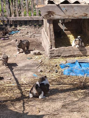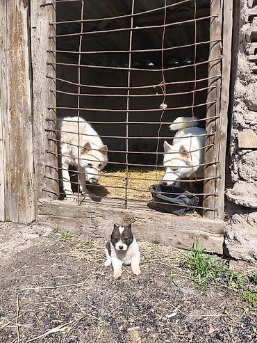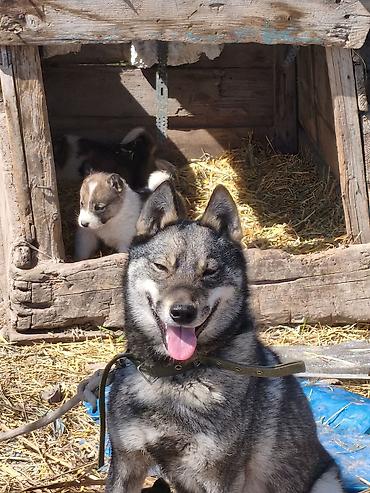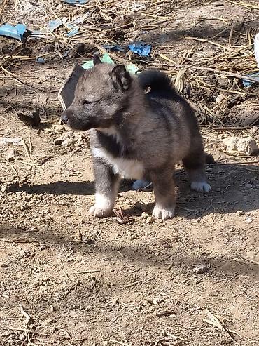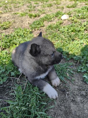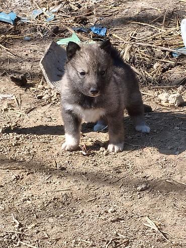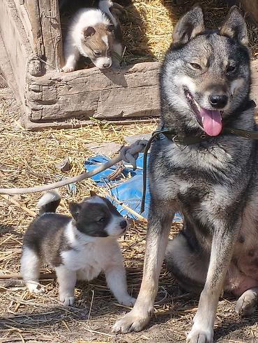 - Окрас щенков: серо-рыжий с белыми отметинами на груди и лапах; плотный подпушек, стоячие уши, хвост кольцом.