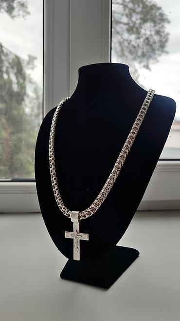 Серебряная цепочка в плетении «Бисмарк» с крестиком. Вес изделия составляет 64.76 грамма. Замок-карабин обеспечивает надежную фиксацию. Подходит для повседневной носки или особых случаев. Цена 220 сом за гр под Заказ