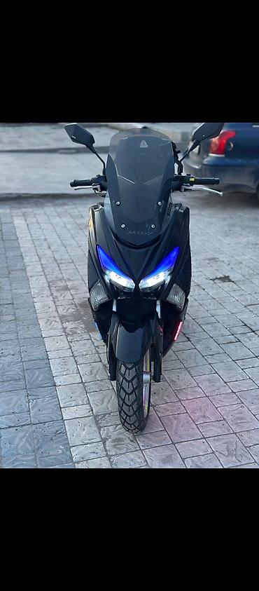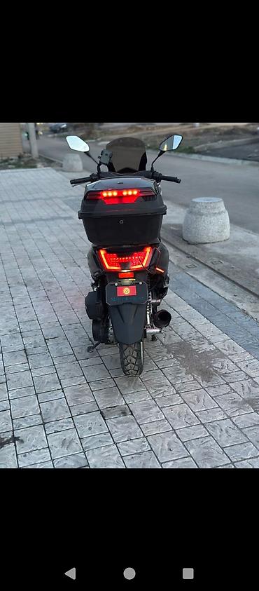 Скутер макси-класса, черный, с полноразмерным ветровым стеклом и