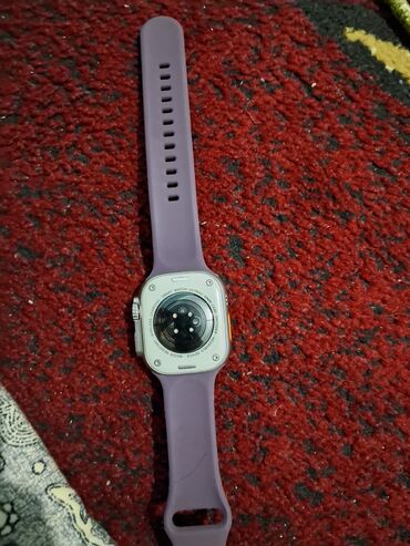 Смарт-часы с фиолетовым силиконовым ремешком и прямоугольным экраном