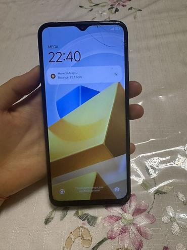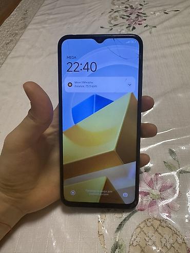 Смартфон POCO (серия M–C; черный цвет, задняя крышка с текстурой “эко‑кожа”).