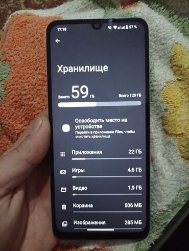 - Память: всего 128 ГБ, на фото отображено занято 59 ГБ.