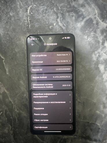 - Память: 128 ГБ встроенной, доступно около 28,5 ГБ (на скриншоте «О телефоне»)