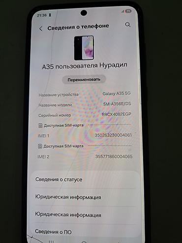 📌Samsung A35 📌256gb 📌б/у 📌5000мАч 📌чехол, стекло 📌гарантия 10 дней на проверку 📌18.000 сом ✅✅✅✅✅✅✅✅✅✅✅✅✅ Рассрочка через банк и без банка От 3х до 12 месяцев. 📌С банком Нужен только паспорт ...