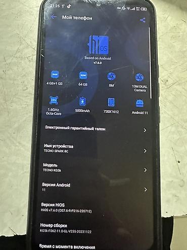 - Экран 6.6" с разрешением 720×1612, частота 90 Гц (HiOS на базе Android 11, версия HiOS v7.6.0)