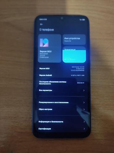 Смартфон с синим корпусом и большим безрамочным экраном с каплевидным вырезом под фронтальную камеру. На дисплее — фирменные уведомления MIUI и обои «Марс». Характеристики по внешнему виду: - Цвет...