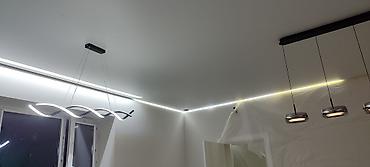 - Проектирование и монтаж встроенных световых линий в потолке: прямые, угловые и замкнутые контуры, геометрические фигуры, периметральные ниши.