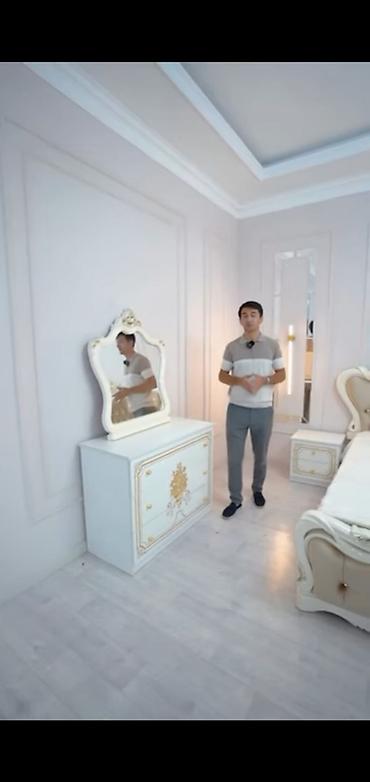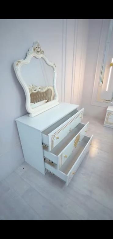 - Туалетный стол/комод с фигурным зеркалом. Фасад украшен тем же орнаментом, выдержан в едином стиле с гарнитуром.