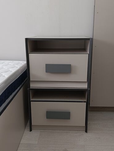 - Прикроватная тумба с двумя выдвижными ящиками и открытыми нишами.