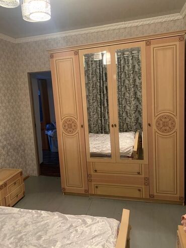 - Шкаф-купе/распашной 4‑дверный: две центральные двери с зеркалами, внизу два выдвижных ящика.
