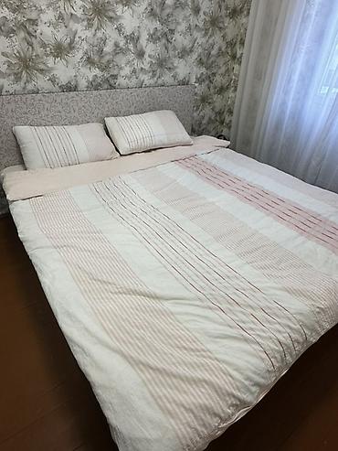 - Двуспальная кровать с мягким изголовьем в тон узора. Просторное спальное место, ровное основание.