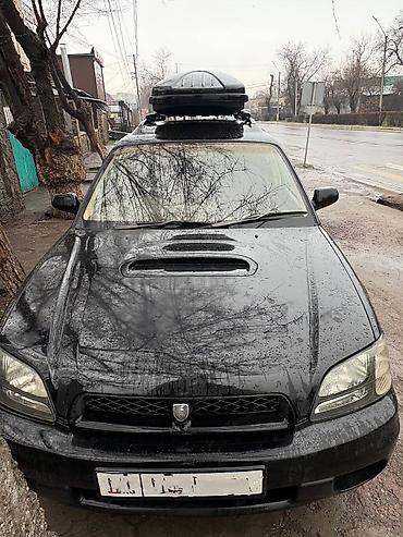 Subaru Outback (универсал) в черном цвете с аэродинамическим боксом на крыше. Год 2005 обьем 2,5 Основные характеристики и оснащение: - Кузов: универсал, черный цвет, контрастные красные акценты (...