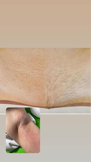 Эффекты на фото: сравнение «до/после» на подмышках, руках и ногах — ровный тон, чистая кожа, выраженное уменьшение количества волос.