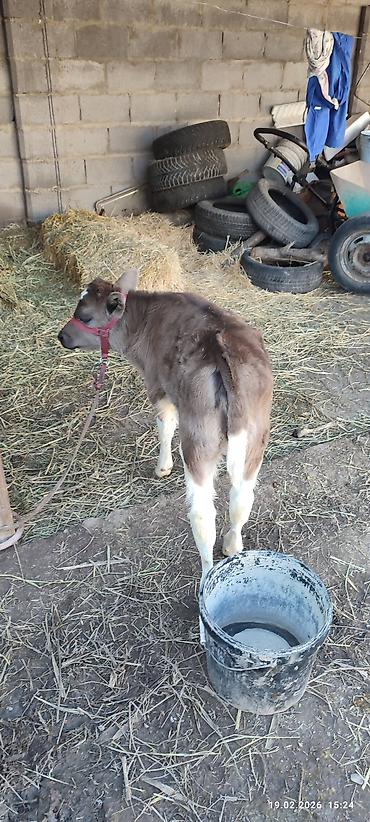 - Порода: помесный мясо-молочный тип (окрас коричневый, белые отметины на ногах и на лбу).