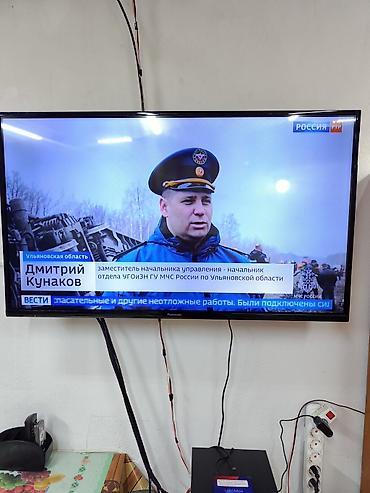 Телевизор Panasonic, диагональ экрана примерно 40–43". Плоская панель