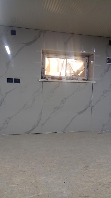 Отделка стен ПВХ‑панелями под мрамор, с утеплением и подготовкой основания.