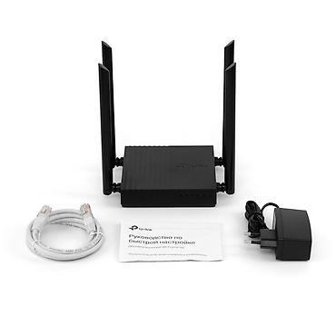 Комплектация на фото: роутер Archer C64, блок питания, кабель Ethernet, руководство по быстрой настройке.