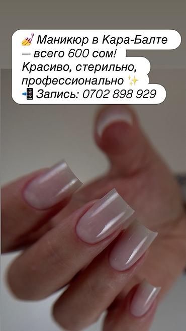 Акция на 2 недели! маникюр гель-лак 800сомов педикюр гель-лак 1000сомов наращивание ногтей1000сомов маникюр гигиенический 400сомов,мужской 600сомов педикюр гигиенический 600,мужской 1000 запись ...