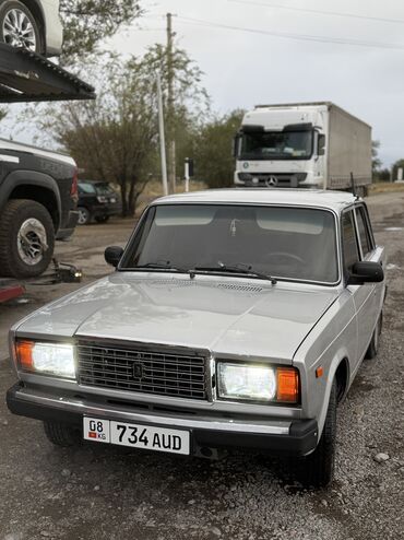 ВАЗ 2107, седан, серебристый цвет. Классический заднеприводный автомобиль с рамной балкой и продольным расположением двигателя.