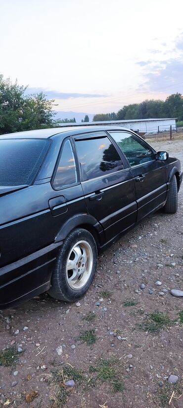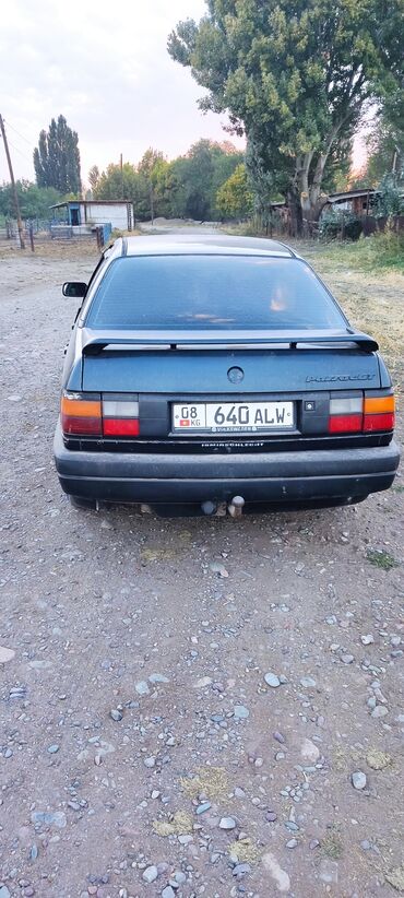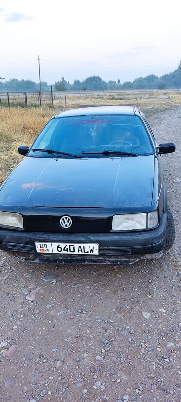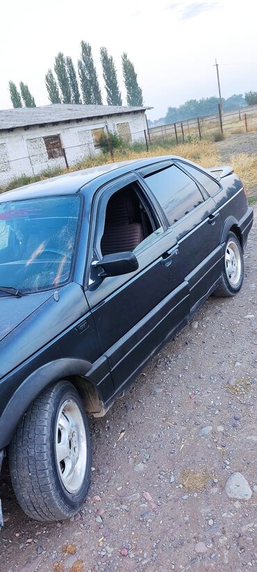 Volkswagen Passat B3, седан, темно-синий цвет. Киргизские номера (KG, регион 08), госномер 198 ACV. Год в объявлении не указан, по модели — начало–середина 1990‑х. Кузов: - 4 двери, задний спойлер...