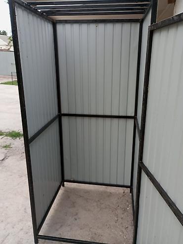 - Обшивка: профнастил светло‑серого цвета по периметру.
