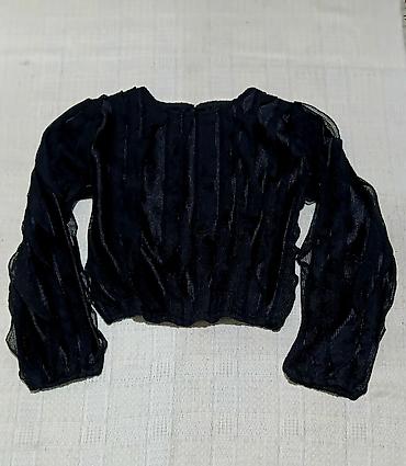 Черная женская блуза с длинными рукавами из полупрозрачного фактурного трикотажа.