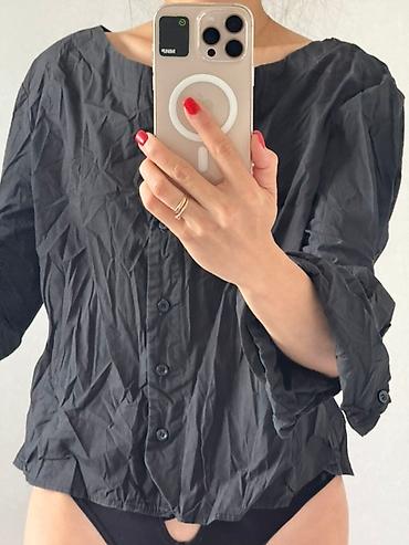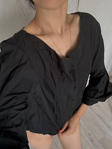 Черная женская блуза с пуговицами спереди. - Свободный прямой крой