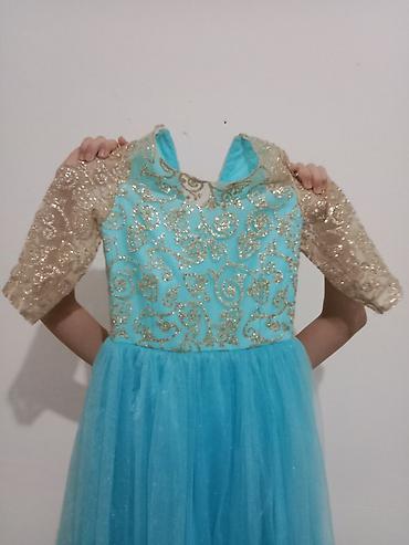 3) Праздничное платье для девочки, бирюзовое