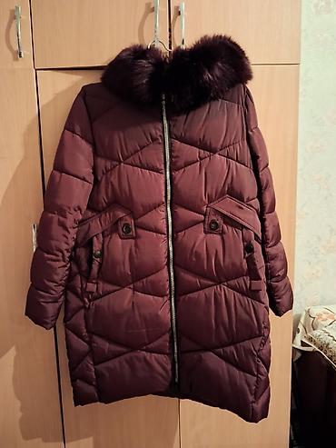 Зимняя женская куртка-пуховик бордового цвета.