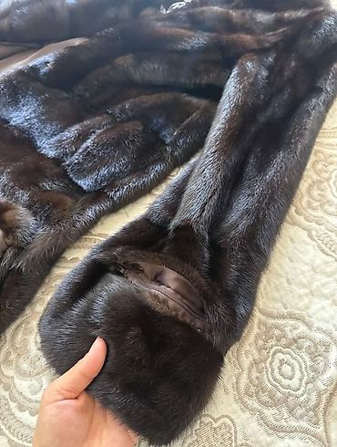 Норковая шуба, натуральный мех, темно-каштановый оттенок.