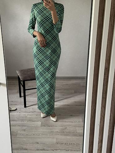Платье-макси в клетку - Цвет: нежно-зелёный с клетчатым рисунком в