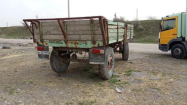 - Прицеп – деревянные борта на металлической раме, борта откидные, задние фонари и кронштейн под номер.