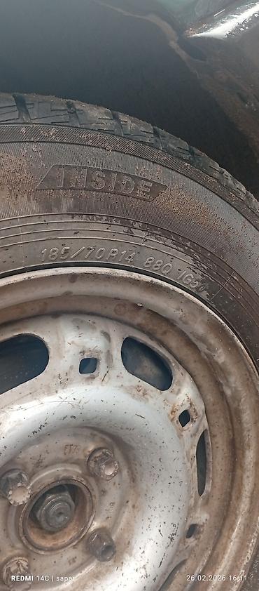 3шт титан диски экоо шина идеал. 1шт шина начар. каченый учоо тен без камер. 5500сом. 3 эле титан бироо жок. сварка жок таза. СРОЧНО. 185 70 14 лето пара хороший сост 2000сом. шина 2шт