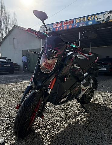 - Дизайн: агрессивный стрит-стиль, чёрный кузов с графикой; красные акценты на руле, тормозных рычагах и перьях вилки
