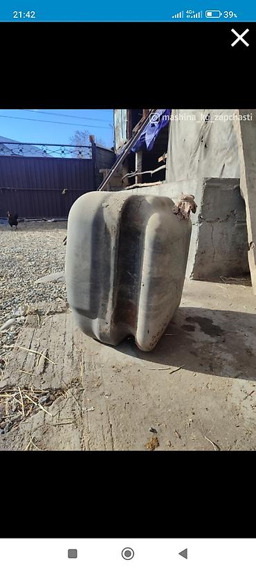 Металлический топливный бак (вероятно от грузового автомобиля/техники). Описание: - Материал: сталь, толстостенный. - Форма: прямоугольная, с округлыми краями. - Заливная горловина с металлической...