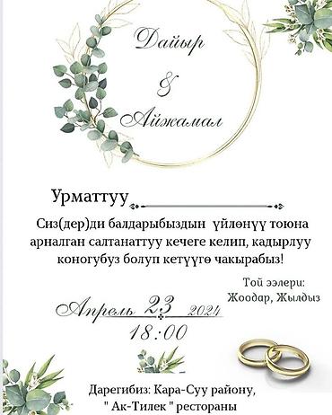 Чакыруу кат тойлорго, туулган күнгө, жана башка кечелерге заказ кабыл алабыз 💌