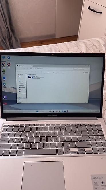 Тонкий серебристый корпус, большой тачпад, узкие рамки экрана. Подходит для учёбы, офиса и повседневных задач, быстрый запуск и работа благодаря SSD и Wi‑Fi 6. Модель/серия: X1504V (указано на коробке).