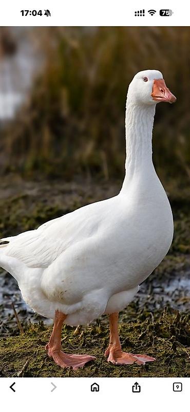 - Крупная мясо-яичная птица с мощным корпусом, длинной шеей, оранжевым клювом и лапами.