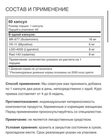 - RAD-140 (Testolone/Radarine) — 8 мг