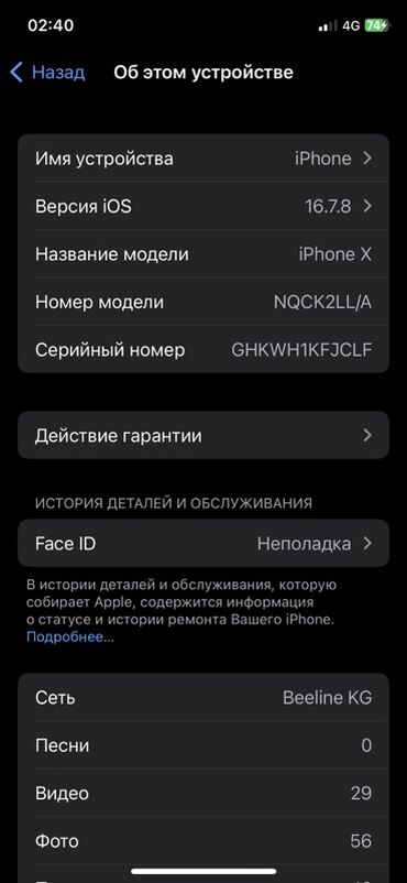 - Face ID: в меню указано «Неполадка».