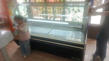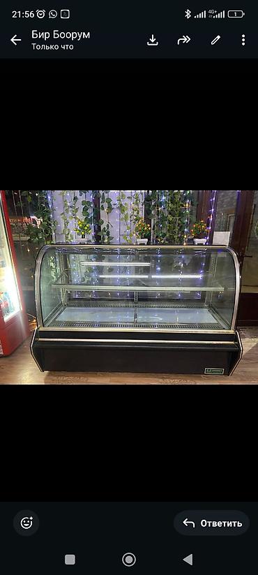 Подойдет для кафе, пекарни, кондитерской, гастронома или фуд-корта. Размер — полноразмерная напольная витрина (широкая, примерно на 1,5–2 м).