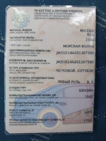 Mazda 626, 1994 г.в., кузов хэтчбек, левый руль. Официальные данные по СРТС:
