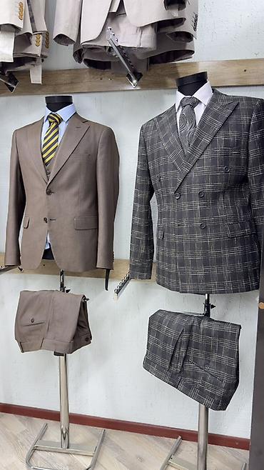 - Ассортимент: одно- и двубортные пиджаки, костюмы-двойки, модели в клетку и однотонные. Представлены деловые, торжественные и повседневные варианты.