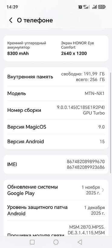 - Операционная система: MagicOS 9.0 на базе Android 15 (сборка 9.0.0.145, GPU Turbo)