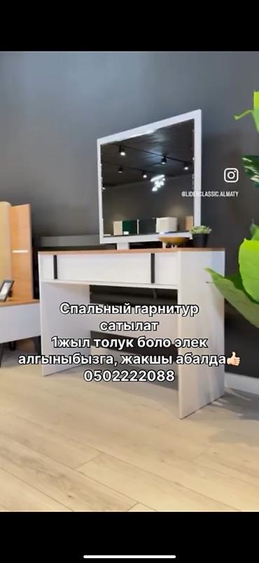 - Туалетный стол/комод с большим настенным зеркалом: выдвижные ящики и открытая ниша для хранения косметики и аксессуаров.